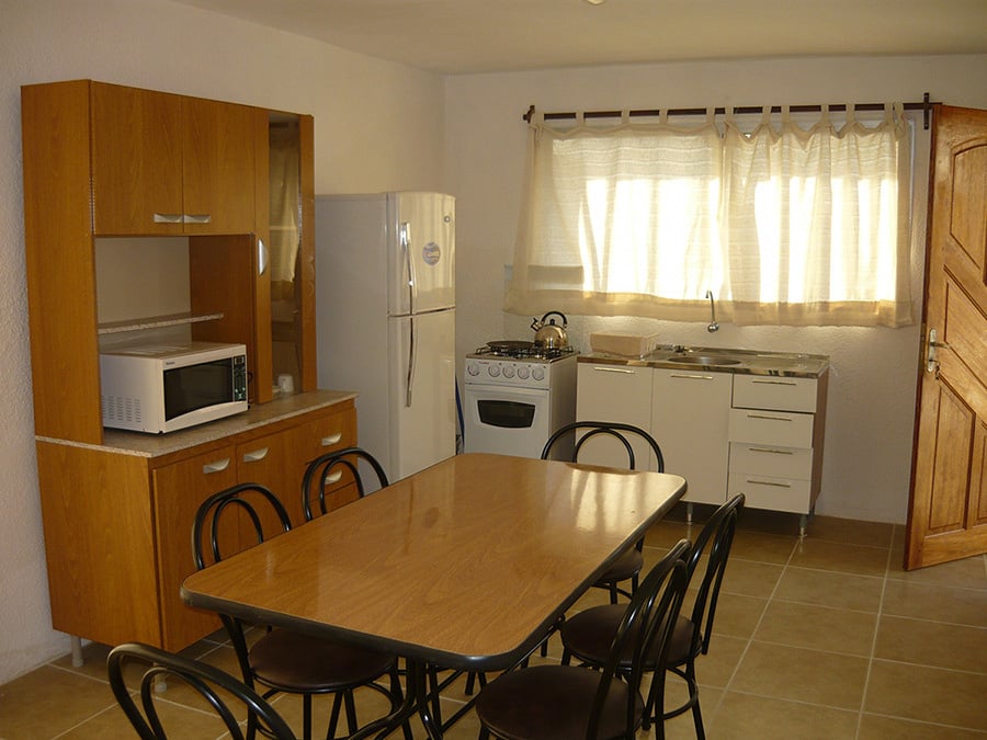 Bloque de 4 departamentos a 2 cuadras de la playa, también de aproximadamente 80 mts. Los de planta baja cuentan con amplio parque al frente y al fondo y parrillero propio, los de planta alta tienen aire acondicionado y un amplio balcón con parrillero. Cada uno cuenta con 2 dormitorios, 1 baño, cocina, comedor y living además de TV LED 32" con cable, Wi-Fi, horno microondas, vajilla completa, equipamiento básico de cocina, heladera con freezer.